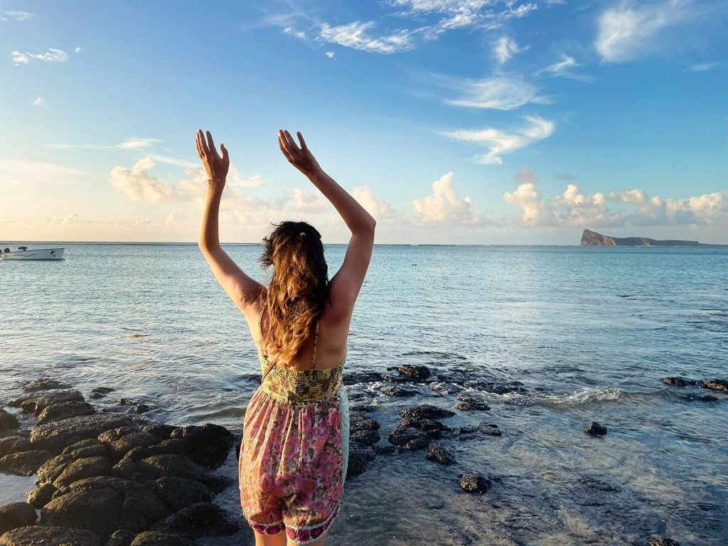 Yellow, orange, blue,bright red birds gathered around us, so near and so frightless. Lovely birds were amusing my cub and her smile was of course bringing other smiles upon her and everything felt right. The beach was stunning, music from the locals was calling you to blend in and forget about the real busy and stupid world. We were on Mauritius.