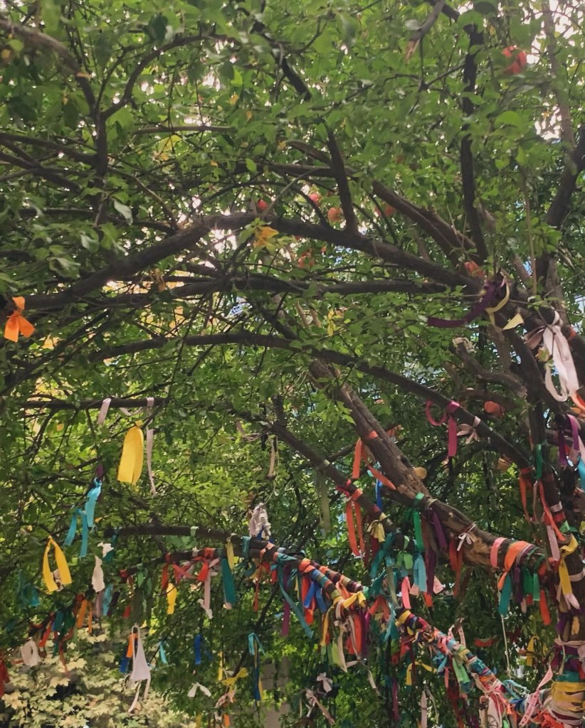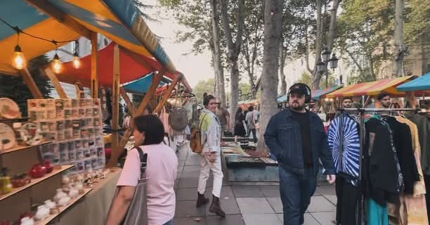 Чим сам дошла до отвореног уметничког пазара морала сам да се прилагодим ономе што видим и купим ручно ишарану тексас јакну са логоом који је заправо летећи манти (јело грузијске кухиње).